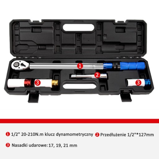 ДВУХНАПРАВЛЕННЫЙ ДИНАМОМЕТРИЧЕСКИЙ КЛЮЧ ДЛЯ КОЛЕС С ЗАМКОМ 1/2" 20-210 Нм + ГОЛОВКИ