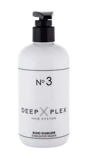 Preparat DEEP_PLEX NO 3 STABILIZATOR WIĄZAŃ ma dostarczyć wspomagającą dawkę substancji aktywnych, które podtrzymują ochronną strukturę uzyskaną w salonie i pomaga zachować moc wiązań w włóknach włosów, które mogą zostać osłabione przez negatywne czynniki zewnętrzne (np. wysoka temperatura suszarki, prostownicy czy lokówki).