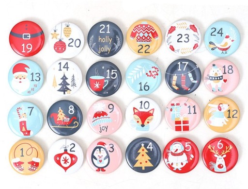 - 24 x przypinki o różnych wzorach
