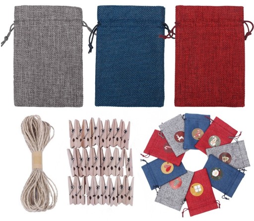 - 24 x woreczki adwentowe w 3 kolorach