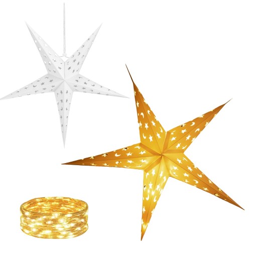 GWIAZDA PAPIEROWA + ŚWIATEŁKA CIEPŁY BIAŁY