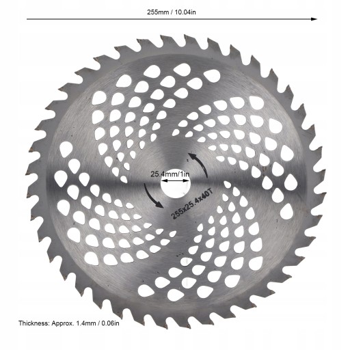 4. GRUBOŚĆ 1.4 MM: średnica zewnętrzna dla 255mm, średnica otworu dla 25.4mm, grubość 1.4mm, łatwy w instalacji i bardzo wszechstronny