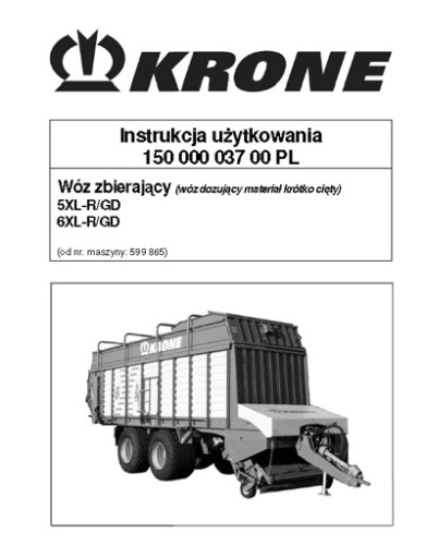 Instrukcja obsługi wozu zbierającego do materiału krótko ciętego Krone 5XL- R/GD, 6XL-R/GD (od nr maszyny 599865 - ...).