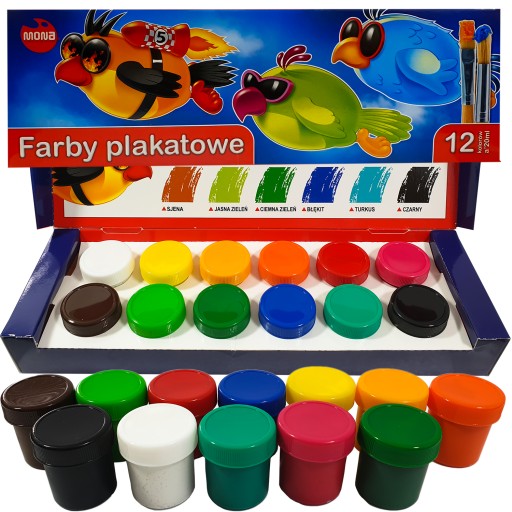 MONA FARBY SZKOLNE PLAKATOWE 12 KOLORÓW 20ML