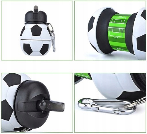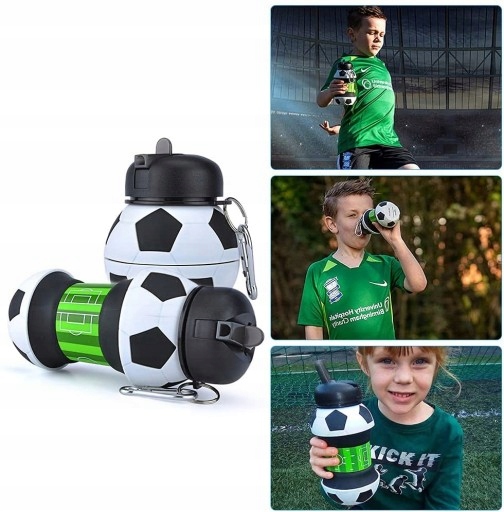 100% silikonu spożywczego. 550 ML przed złożeniem, 200 ML po złożeniu. Elastyczny, lekki silikon zaprojektowany dla wygody i łatwego przechowywania. W przeciwieństwie do tradycyjnych sportowych bidonów, ten bidon dla dzieci można złożyć w małą piłkę nożną.