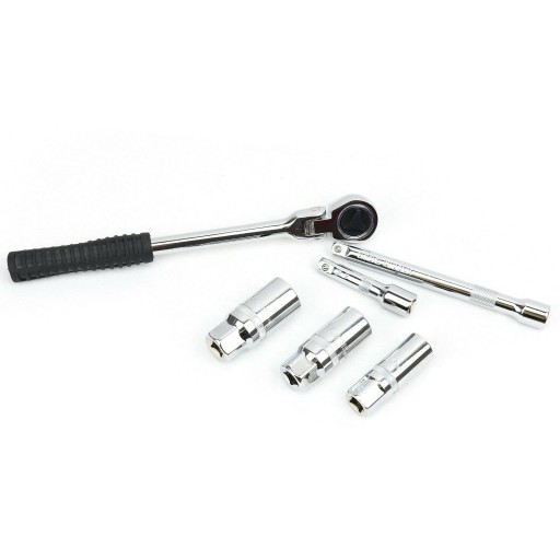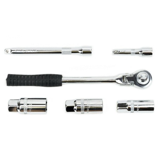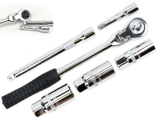 Uniwersalny, profesjonalnie wykonany klucz do świec wykonany z wysokiej jakości stali CrV. Zestaw wyposażony jest w trzy nasadki 16mm, 18mm i 21mm. Grzechotka "łamana".