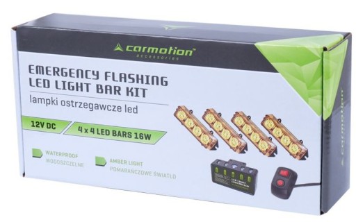 LAMPY OSTRZEGAWCZE LED POMARAŃCZOWE DO LAWETY POMOCY DROGOWEJ KOGUTY STROBOSKOP KOMPLET 4 SZTUKI Z PILOTEM 12V / 24V 4X4 LED 16W