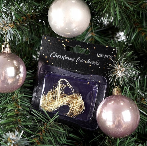 - PRAKTYCZNE - Zestaw 100 sztuk haczyków do zawieszenia bombek oraz ozdób świątecznych na choince.