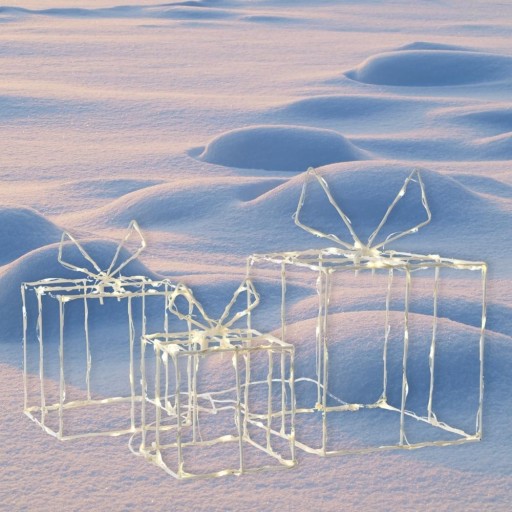 Prezenty świecą dzięki aż 190 ciepłym, białym lampkom LED, co nadaje im magicznego uroku. Wykonane z najwyższej jakości metalu w białym kolorze, emanują efektownością i elegancją. Nie musisz się martwić, że zgubisz jeden ze swoich podarunków – wszystkie połączone są ze sobą świecącym, uroczym kabelkiem. Naciśnij tylko jeden przycisk i magicznie rozświetl Twój zestaw prezentów.