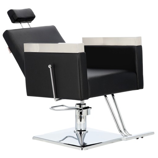 Fotel charakteryzuje się eleganckim i ergonomicznym designem, który pozwala na wygodną pracę fryzjera oraz relaks klientów.