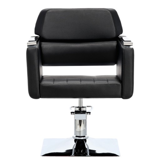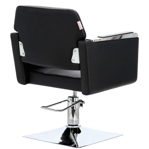 Fotel charakteryzuje się eleganckim i ergonomicznym designem, który pozwala na wygodną pracę fryzjera oraz relaks klientów.