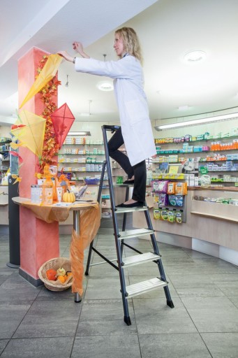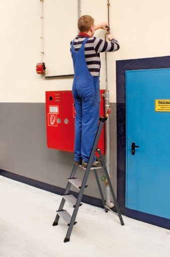 ✅ Drabina wolnostojąca ze stopniami, dedykowana pracom wymagającym zapewnienia komfortu i higieniczności.
