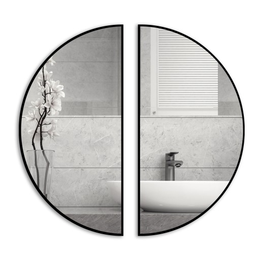 Półokrągłe lustro ścienne w aluminiowej ramie.