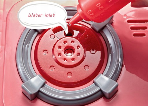ZIMNA PARA, DŹWIĘKI PODCZAS GOTOWANIA, WODA – kuchnia emituje realistyczne dźwięki i odgłosy znane podczas gotowania, takie jak smażenie, oraz bulgotanie. Lewy palnik posiada wbudowany parownik, który pozwala na uzyskanie efektu "zimnej pary". Aby go uzyskać należy wlać około 50ml wody do otworu znajdującego się na palniku. Postawić garnek, a po pewnym czasie (jak już 'woda się zagotuje') z garnków wydobędzie się zimna para wodna. W kuchni zastosowano kran, który posiada pompkę. Wystarczy wlać do zlewu wodę, nacisnąć pompkę, a z kranu wyleci woda! Jest to obieg zamknięty. Dziecko może opłukać owoce, warzywa, a także pozmywać naczynia! Wszystkie funkcje wzbudzają zainteresowanie dzieci i zachęcają do zabawy.