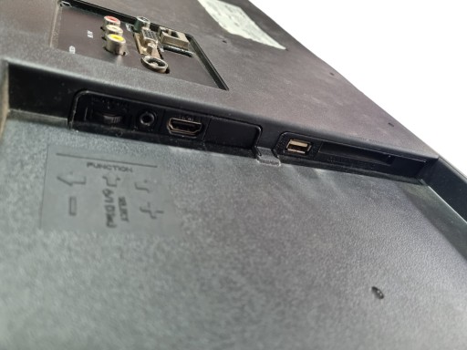 Telewizor MA PĘKNIĘCIE NA EKRANIE, poza tym posiada minimalne ślady użytkowania w postaci rysek i zadrapań.