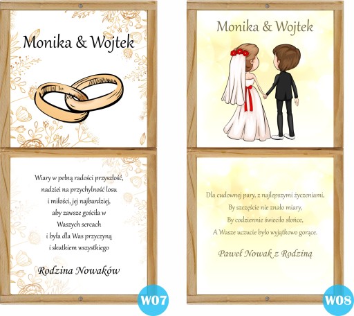 "Wybieram wzór S01, imiona: Monika & Wojtek, data: 22.08.2023.