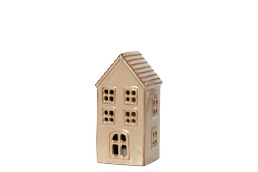 Porcelanowy lampion LED w kształcie domku.