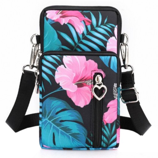 МИНИ-сумочка в СПИСОК для телефона Кошелек Черные Цветы Розовая Монстера