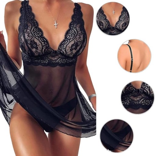 ZMYSŁOWA KORONKOWA KOSZULA NOCNA + STRINGI GRATIS