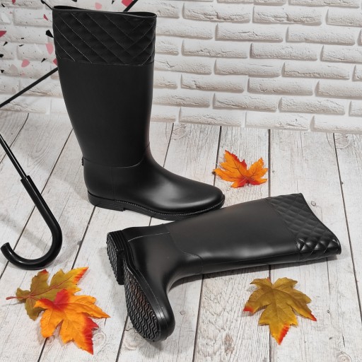 Wyjątkowo zgrabne kalosze damskie nawiązujące do klasycznych oficerek. Tłoczenia w górnej części cholewek nadają im kobiecego charakteru. Miękka guma cholewki pokryta jest od wewnątrz syntetykiem ułatwiającym zakładanie i zdejmowanie kaloszy. Ponadczasowy fason w połączeniu z tradycyjnym czarnym kolorem tworzą uniwersalny neutralny w wyrazie model pasujący do każdej stylizacji.