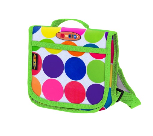 Plecak Micro zapinany na rzep. Pozwala zabrać na spacer z hulajnogą wszystko co potrzeba. W zestawie jest uchwyt umożliwiający zamocowanie na drążku kierownicy hulajnogi Micro. Pasuje do modeli Mini Micro, Maxi Micro oraz Micro Sprite. Plecak zamocujemy także na innych drążkach o średnicy 22 i 25 mm.