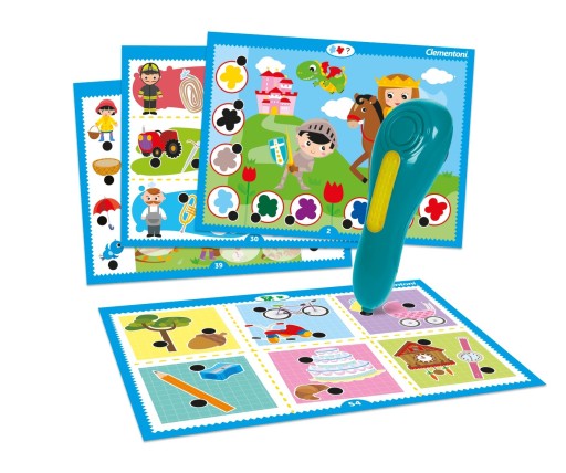 Mówiący elektroniczny długopis prowadzi dzieci przez grę, informując je, czy udzielona przez nie odpowiedź jest prawidłowa poprzez efekty dźwiękowe i świetlne.