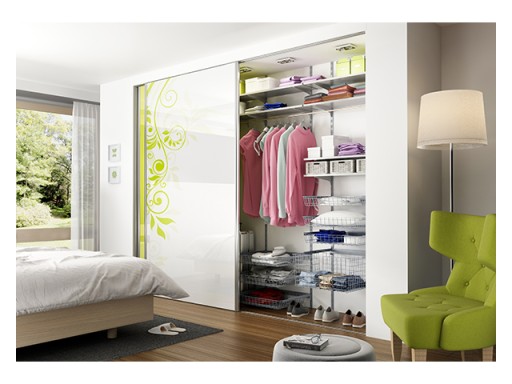 2. Bazą - podstawą systemu są szyny (listwy montażowe) z perforowanymi otworami umożliwiającymi instalację akcesoriów. Szyny można przykręcić bezpośrednio do ściany lub osadzić je dodatkowo na poziomych listwach montażowych. Do szyn wpinamy różne akcesoria m.in. wsporniki półek, uchwyty drążków, półki druciane, półki na buty, wieszaki spodni, suszarkę na pranie, szyny umożliwiające montaż haków szerokiego zastosowania, płyty perforowane umożliwiające montaż haczyków, haków, organizerów itd.