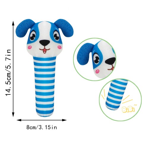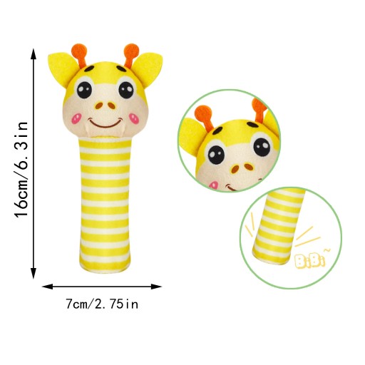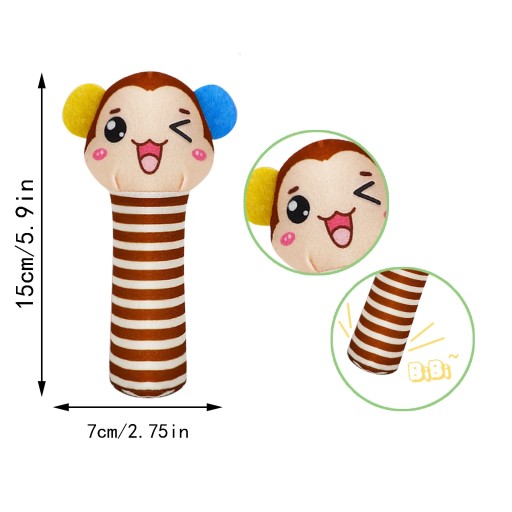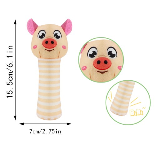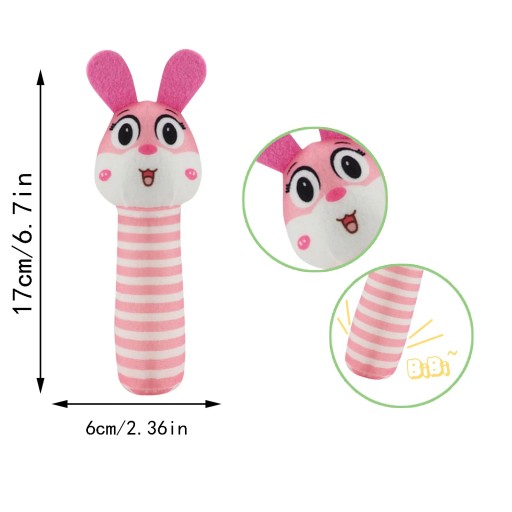 Pluszowa zabawka ucieszy Twoje dziecko. Zabawka jest przystosowana dla niemowląt, posiada budowę idealną dla rączek niemowlaka oraz jest wypełniona miękką watą. Dodatkowo sam rodzic może trzymać za trzon i bawić się z dzieckiem. Po ściśnięciu trzonu, pluszak wydaje charakterystyczny dźwięk piszczałki - pozwoli to na rozbawienie i skupienie dziecka oraz posiada element szeleszczący pobudzający sensorykę i zmysły dziecka. Miękki w dotyku pluszak stanie się przyjacielem Waszego dziecka już od najmłodszych lat,