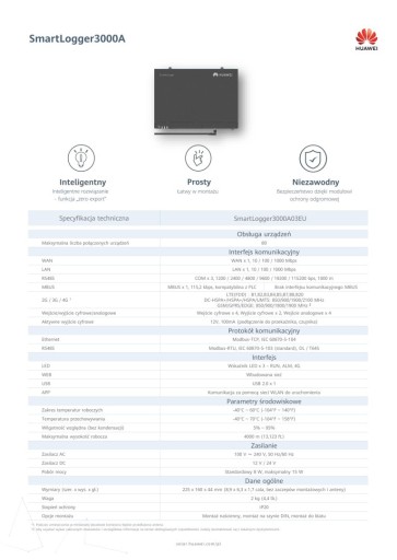 - SmartLogger posiada zintegrowany portal internetowy do konfiguracji systemu