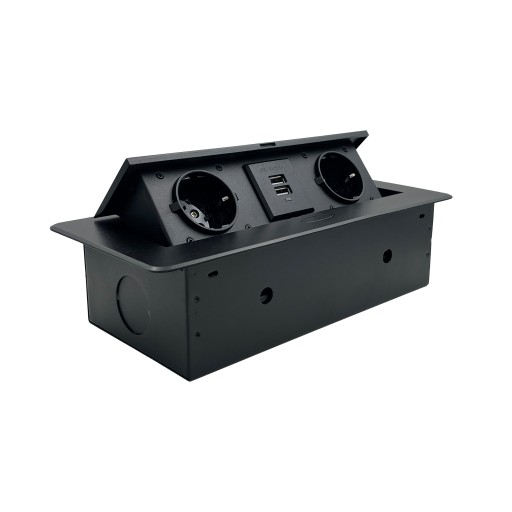 Двойная розетка + USB, выдвижная, встраиваемая в столешницу, 2xGR + 2xUSB-A -ЧЕРНЫЙ