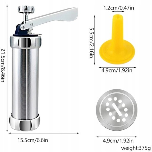 Maszyna do ciastek idealnie sprawdzi się jako dekorator tortów, ciast ale także jako maszynka do robienia ciastek czy szpryca do dekorowania.