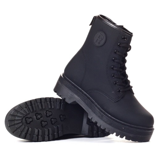 Damskie traperki w kolorze czarnym z ozdobną naszywką na cholewce.� Posiadają delikatne ocieplenie w postaci pianki❗ Zapinane na suwak, dodatkowo wyposażone w sznurówki. Stabilna, gruba podeszwa dobrze amortyzuje stopę oraz chroni przed zimnem.💗 Wykonane z dobrych jakościowo materiałów. Prosty fason sprawia, że pasują do wielu stylizacji. 💯