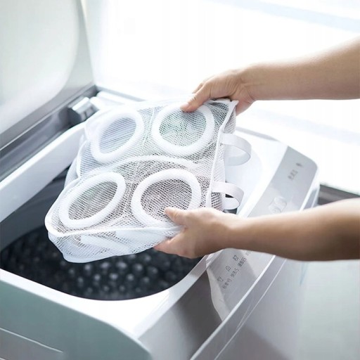 Praktyczny worek, siatka do prania obuwia. Doskonale chroni buty przed zniszczeniem podczas prania w pralce automatycznej. Wyposażony w zapięcie na zamek błyskawiczny oraz praktyczne pętelki, które umożliwiają zawieszenie butów do czasu wyschnięcia.