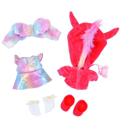 Hannah ma przemienny strój, parę butów i pasujący smoczek.