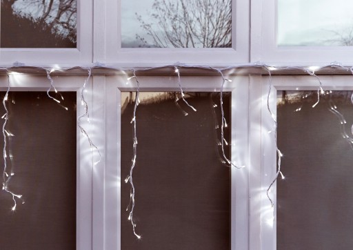 Zawartość opakowania: 8 przezroczystych klipsów do wieszania lampek, 10 pasków