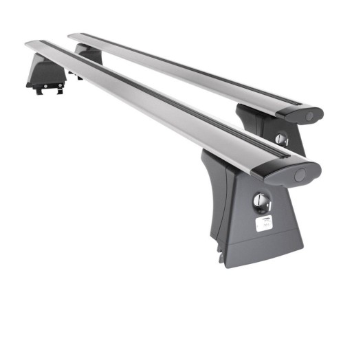 Bagażnik dachowy bazowy składa się z 2 solidnych aluminiowych belek oraz 4 uchwytów (tzw. łap) Beta β-102, które dopasowane są do typu dachu auta oraz do jego modelu i generacji.