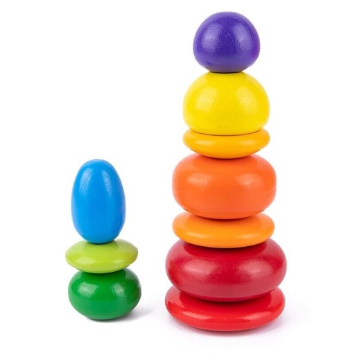 W skład zestawu wchodzi 10 sztuk kamieni balansujących z wysokiej jakości drewna, pomalowanych bezpieczną i wytrzymałą farbą na bazie wody.
