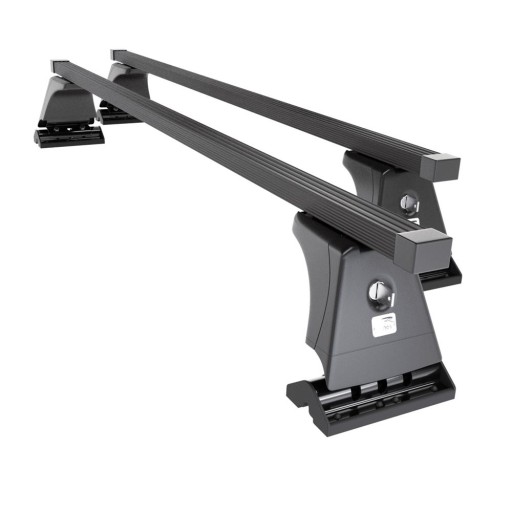 Bagażnik dachowy bazowy składa się z 2 solidnych stalowych belek oraz 4 uchwytów (tzw. łap) Beta β-103, które dopasowane są do typu dachu auta oraz do jego modelu i generacji.