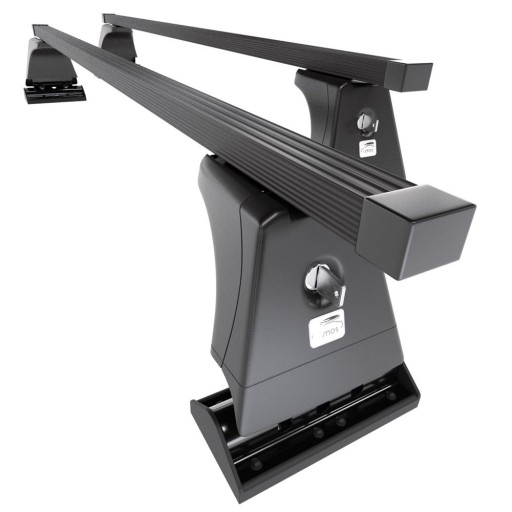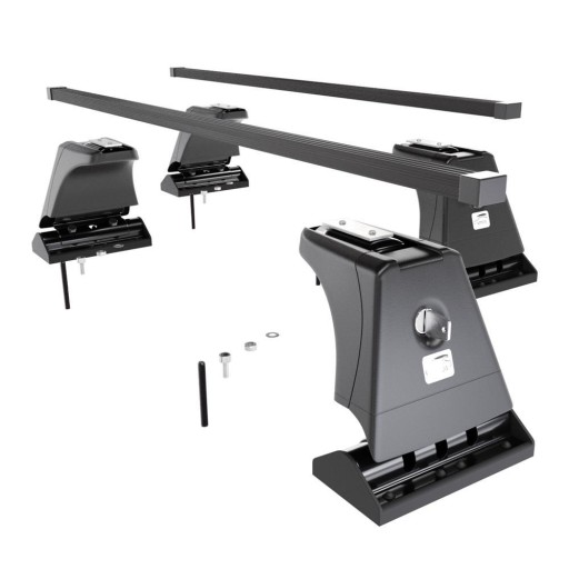 Bagażnik dachowy bazowy składa się z 2 solidnych stalowych belek oraz 4 uchwytów (tzw. łap) Beta β-107, które dopasowane są do typu dachu auta oraz do jego modelu i generacji.