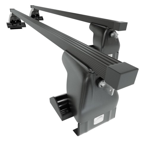 Bagażnik dachowy bazowy składa się z 2 solidnych stalowych belek oraz 4 uchwytów (tzw. łap) Dromader D-1, które dopasowane są do typu dachu auta oraz do jego modelu i generacji.