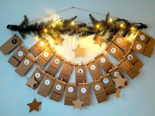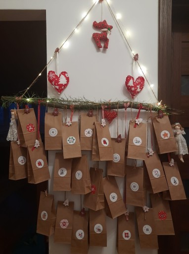 KALENDARZ ADWENTOWY-eko torebki klamerki naklejki