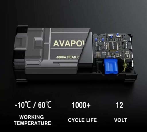 BOOSTER AVAPOW A58 zapewnia prąd szczytowy do 4000 A, który może uruchomić wszystkie samochody 12 V (w tym hybrydowe), takie jak motocykle, quady, UTV, kosiarki do trawy, skutery śnieżne i łatwiej w ciągu zaledwie kilku minut (dla wszystkich gazów lub oleju napędowego do 10L) - do 60 razy na pełnym naładowaniu.