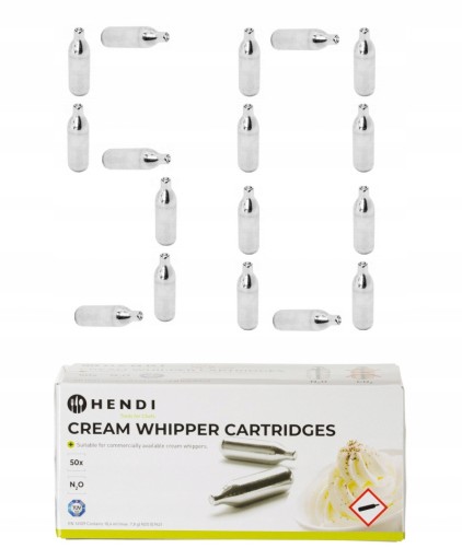 Naboje do syfonu do bitej śmietany z gazem N2O 50 szt. - Hendi 586907