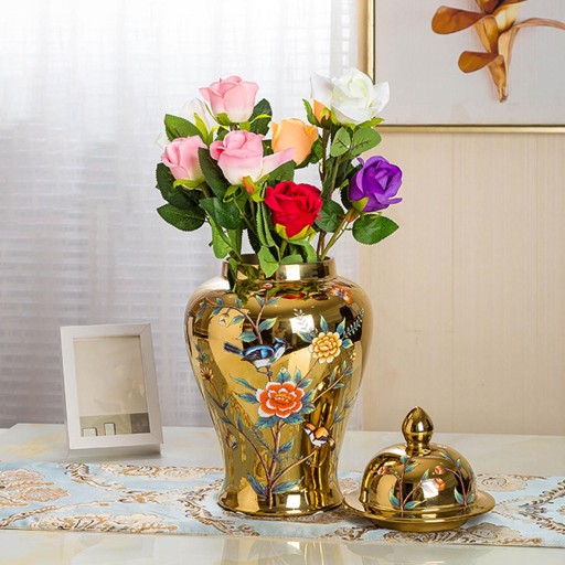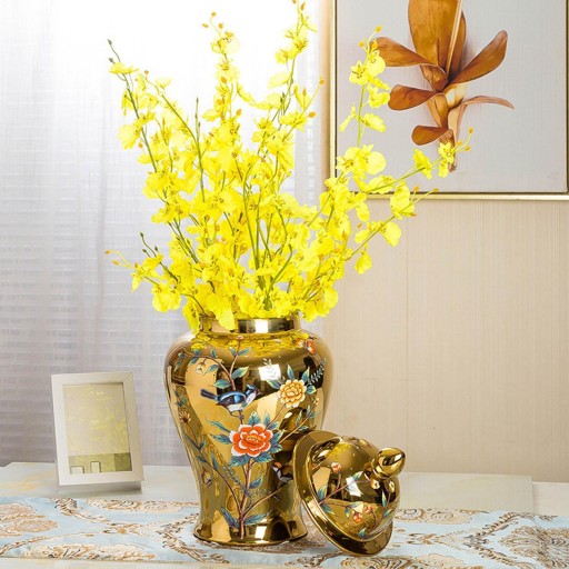 Porcelanowy słoik na imbir świątynny słoik do przechowywania biuro sypialnia ceramiczny wazon na kwiaty Aureate