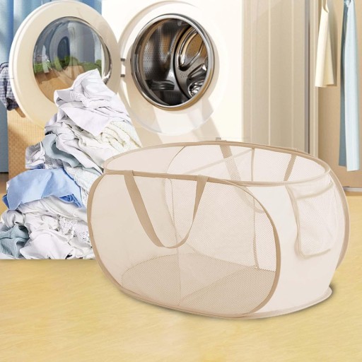 [Lekki] kosz z uchwytem do przenoszenia, wzmocnione szwy, trwalszy. Siatkowa konstrukcja jest oddychająca, lekka i łatwa do przenoszenia do pralni z dowolnego miejsca.