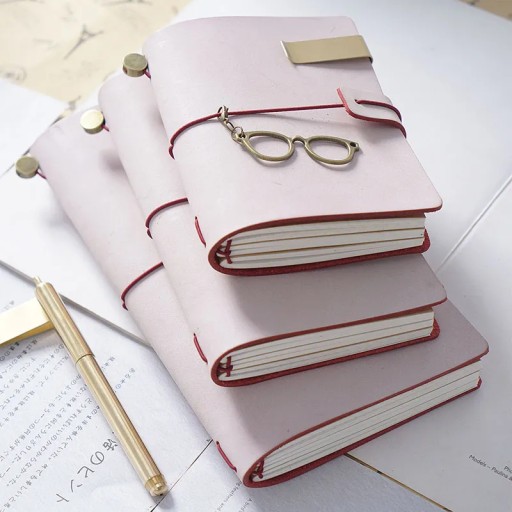 White Fog Wax Leather TN Hand Book Leather Notepad Handmade Cowhide Notebook Loose-leaf Pink Girl Hand Book Notebook