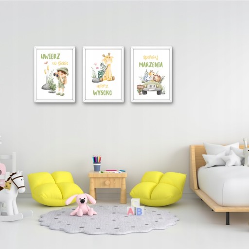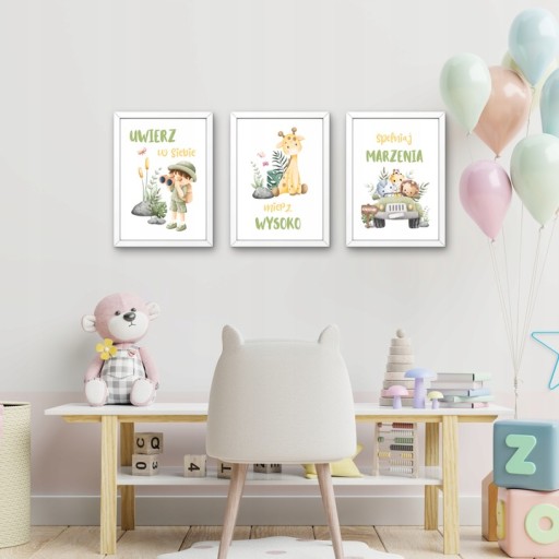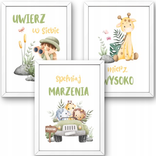 OBRAZKI DO POKOJU DZIECIĘCEGO ZESTAW PLAKATY MOTYWACYJNE DLA DZIECI SAFARI