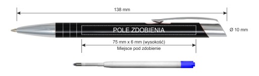 Wkład z tuszem olejowym. Kolor wkładu niebieski. Na życzenie, możemy zmienić wkład na kolor czarny lub czerwony.