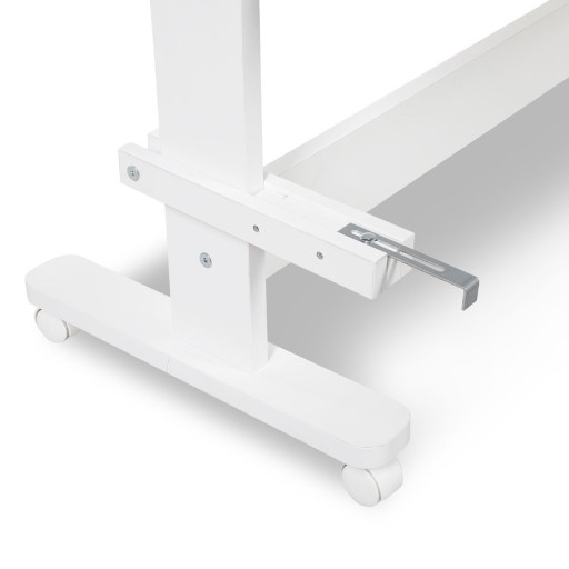 szerokość podstawy nogi łóżka wynosi 45 cm, a długość dolnej krawędzi szczytu wynosi 44 cm i górnej krawędzi 50 cm. Najniższe położenie dna znajduje się 25 cm od podłogi, następnie są 3 poziomy pośrednie co 3,2 cm, a najwyższy poziom znajduje się 47 cm od podłogi.