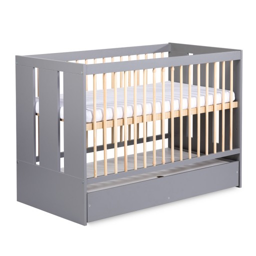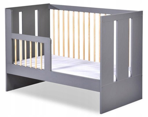 KLUPŚ Łóżeczko PAULA Grafit z barierką + szuflada